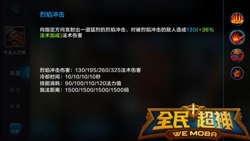 烈焰冲击:向指定方向发射出一道猛烈的烈焰冲击伤害位于一条直线上的敌人