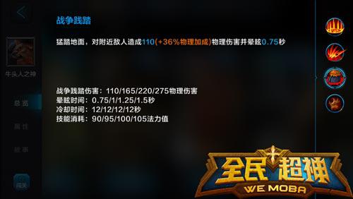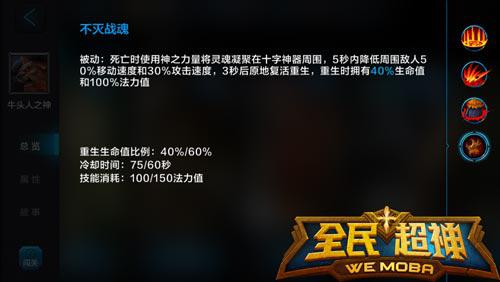 重生:(被动技能)牛头人之神倒下后,他飞散的冥魂会重组,使他复活。复活过程中附近的敌人会被减速