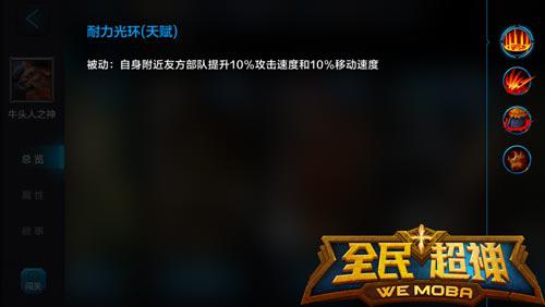 耐力光环(天赋):增加牛头人之神附近友方部队的攻击和移动速度
