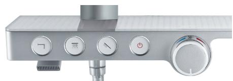 好的产品设计可以和用户对话,而最高的境界,莫过于看到产品便能知晓它的一切。雨沐系列产品将“以人为本”的设计理念发挥到极致,巧妙地将花洒出水控制功能融合在大平面置物平台上,不同功能的按键一目了然,让用户以最简便的方式进行自由切换选择,调温更加精准至±0.5℃水温,恒温防烫,完美解决了普通花洒功能选择方面不易识别、易误操作及安全等问题。