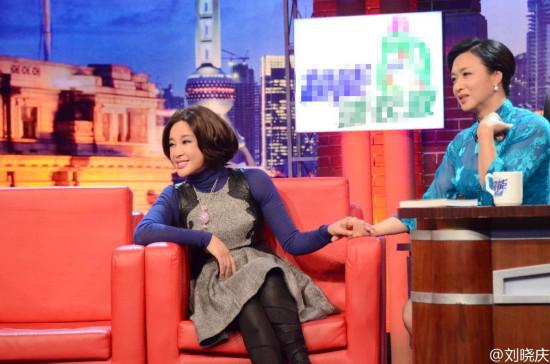 照片中,刘晓庆正在给金星介绍自己的新书。刘晓庆和金星这对好姐妹,在访谈中不时握手而谈,气氛十分融洽!