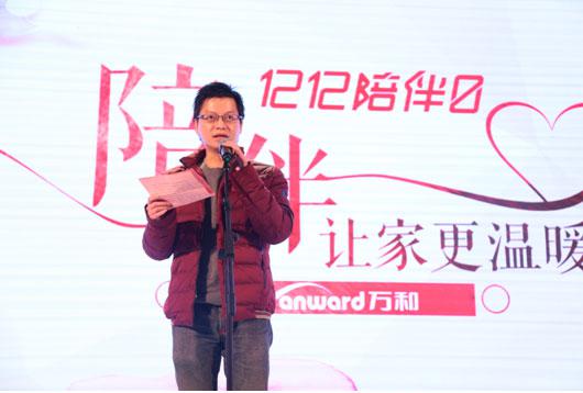 《南都娱乐周刊》副总经理黄舰伟在致辞中表示:与万和结缘于“第五届明星公民”公益活动,一起提出“陪伴,让家更温暖”的主题。做公益看的不是气质,而是看你有没有行动,有没有份量。我们提倡设立“1212陪伴日”,就是用行动让家更温暖,希望“1212陪伴日”的设立能够唤起大家对家庭的关注,对“陪伴”的关注。