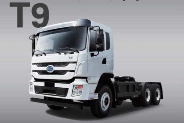 同样在中国制造的比亚迪T9A系列纯电动载具,采用单驱动桥和左侧单边驾驶舱设定,可成为吊车、集装箱转运车(码头-堆放点)底盘。