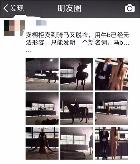 家居圈中难得的劲爆事件,不少人也抓住机会吐槽,朋友圈内一片欢乐,“蔡明双层下巴”、“坐怀不乱”、“裸女不如boloni的橱柜吸引人”,还比如说这位就直截了当的说道,“按住图片弹出了举办按钮,要不要点下去呢”,由此充分说明,估计蔡明和“裸女”这几天估计没少被举报,没准已经在各网监的严密监控之中了……