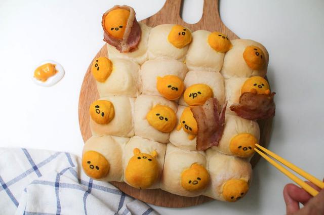 永远睡不醒的懒蛋蛋躺在手撕面包上,还原度百分百。
