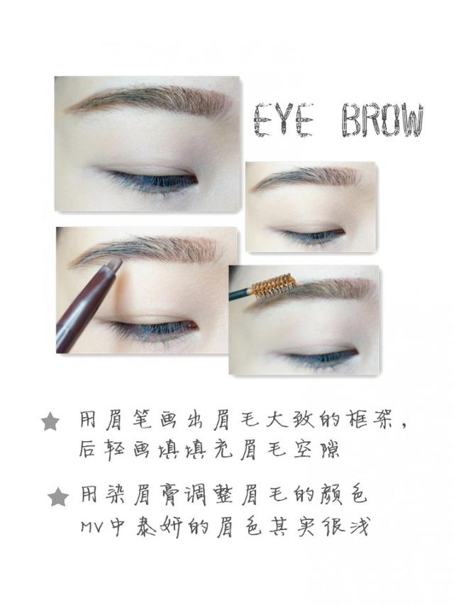 眉毛一定不能画深色,要用染眉膏将眉毛染成和头发相近的浅色系眉毛