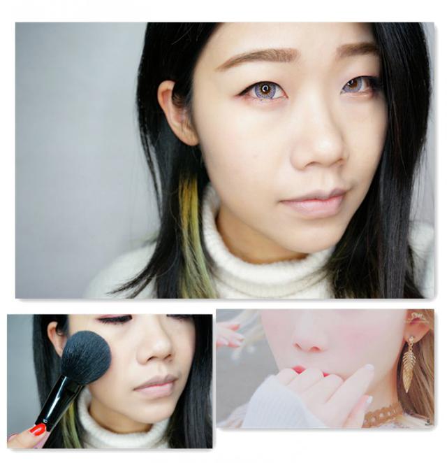 一种欧洲文艺复兴时期油画少女的感觉,所以我们用刷子沾取腮红后弹去多余的粉末