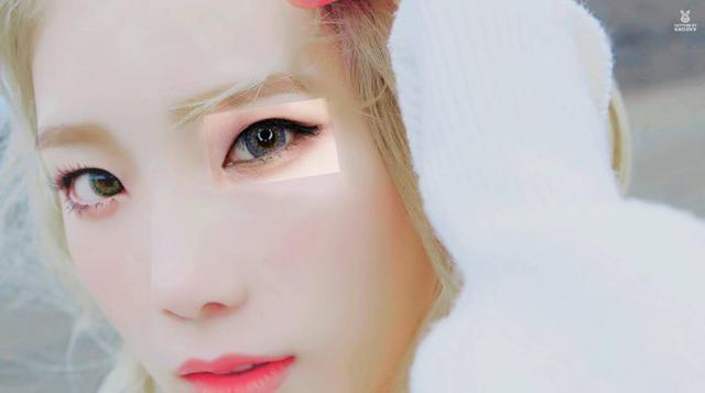 腮红依旧是粉色,泰妍的皮肤很白,粉色的腮红打上去好似从皮肤中透出的感觉