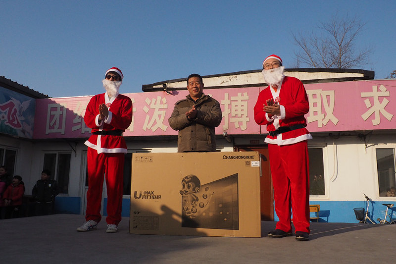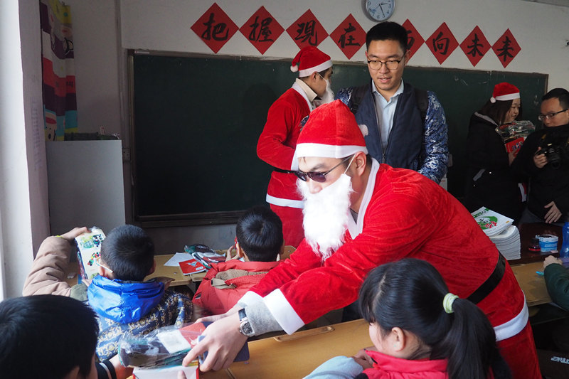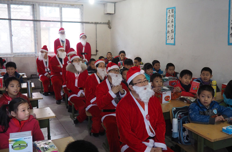 12月24日,优胜教育集团携手中国青少年发展基金会开启“优胜益 ,暖冬行动”公益项目,优胜教育集团CEO陈昊携众高管化装为圣诞老人,进入昌平新源打工子弟学校,“圣诞老人们”为孩子们献上精心准备的围巾、保温碗、电视机等暖心圣诞礼物,给孩子们带来欢乐的同时,也让孩子们多一个窗口去了解这个世界。