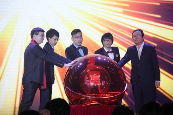 年会在最后举行了盛大的新年度集团全线业务启动仪式。由优胜教育集团董事长陈昊先生、执行董事刘欣伟先生与周扬先生和“感动优胜人物”马老师和钤校长一起,共同按下了启动仪,“优胜辉煌”四个醒目的大字亮起,在全场浩瀚的掌声里,优胜(中国)教育集团开启了新篇章!