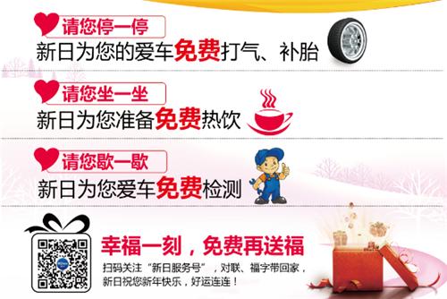 此外,休息期间,来到服务站点参加“来新日,把福带回家”线上活动,还可免费获得由新日电动车提供的新春大礼包一份。带着新日的祝福,充满力量,向更远的路途进发。
