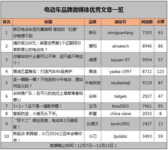 微信公众号作为电动车一、二线品牌官方传播渠道,是一种行之有效的方式,文章发出后传播速度快而且成本低,效果也比较明显。下面附上《电动车品牌微媒体优秀文章一览表》,仅供行业人士参考。