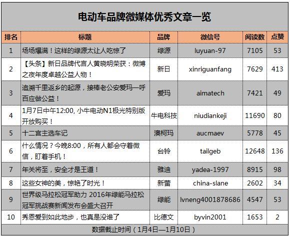 微信公众号作为电动车一、二线品牌官方传播渠道,是一种行之有效的方式,文章发出后传播速度快而且成本低,效果也比较明显。下面附上《电动车品牌微媒体优秀文章一览表》,仅供行业人士参考。
