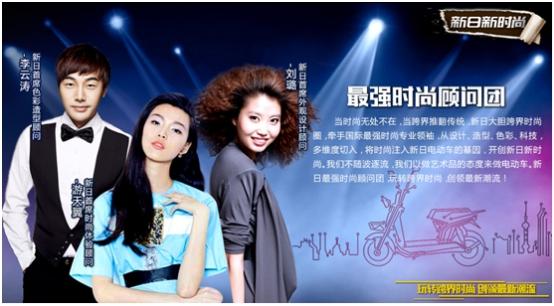 2015年,新日电动车高调宣布与国际色彩造型教父李云涛、新锐设计缪斯刘璐、时尚T台女王游天翼进行合作组建新日时尚顾问团,并成功推出《2015中国电动车行业春夏时尚蓝皮书》,为新日电动车奠定了行业时尚先锋的地位。