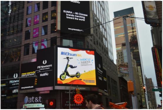 今年以来,为了使新日品牌进一步走向世界,展示中国企业形象,新日电动车与包括华为、格力在内的66个中国顶级品牌的广告亮相素有“世界十字路口”之称的纽约时代广场,比肩梅西百货、骆驼香烟、可口可乐等世界知名品牌。
