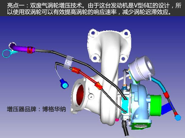先来列举下这台发动机上所使用的技术亮点:双涡轮增压、缸内直喷、双独立可变气门正时、集成式排气歧管。