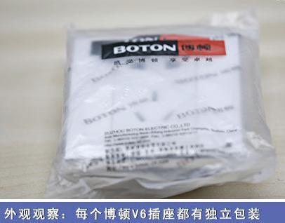编辑点评:博顿V6系列插座外观采用纯钢架结构设计,使得安装平整、安全、不易变形。其扣位设计采用功能件与中板镶嵌式卡位,采用功能件上框架定位,使定位更精确,更美观、更牢固。此外,每个博顿V6插座都有精美的独立包装和产品合格验证书,面板还有独立保护袋,避免插座在装修中的磨损和弄脏。