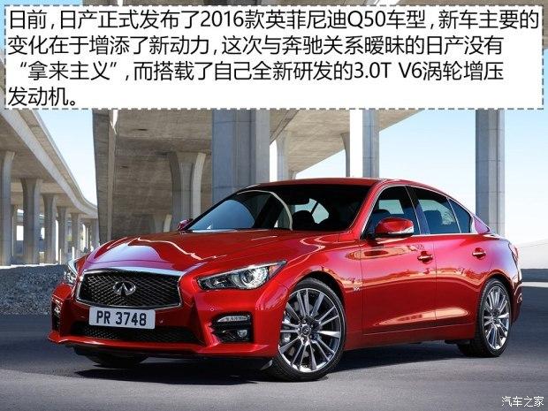 [汽车之家发动机技术] 当英菲尼迪Q50装上了奔驰的2.0T发动机之后,我们以为这款变了“心”的车型已经完全倾心于奔驰了,所以当曝出2016款英菲尼迪Q50将新添3.0T V6发动机的消息时,我们的第一反应是会再次移植奔驰的3.0T V6发动机或者借鉴奔驰的技术。然而事实并非如此,日产这次给了我们惊喜,全新的3.0T V6发动机由自己一手打造,而且部分性能参数超越了奔驰的3.0T V6发动机。日产到底用了哪些新技术,我们一起去了解一下吧。