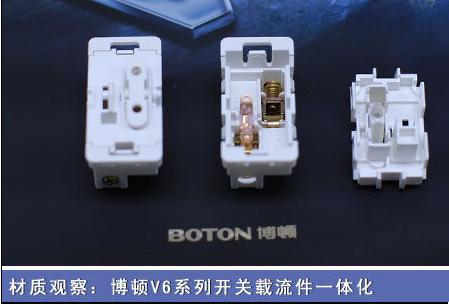 编辑点评:面板采用进口pc材料,阻燃,耐高温,抗冲击,不变色。载流零件壳体采用进口阻燃PA66尼龙,绝缘性好。普通开关在载流件的设计上,通常用焊接或铆接的技术方式,而博顿的“载流件一体化”使整个载流件一气合成,无任何焊接点。