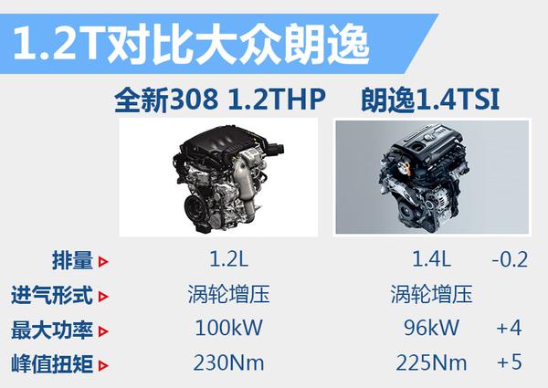 东风标致全新一代308上市后将与上海-大众朗逸等同级车型竞争。在动力方面,朗逸搭载的是一款最大功率为96kW,峰值扭矩为225Nm的1.4TSI涡轮增压发动机。与东风标致全新308搭载的最大功率为100kW,峰值扭矩为230Nm的1.2THP发动机相比,1.2THP发动机在数据方面更胜一筹。