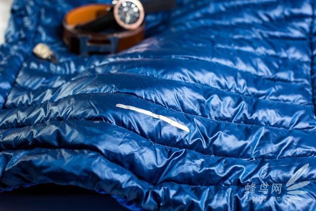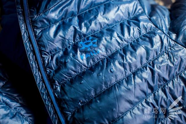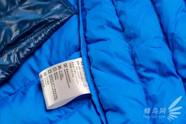 这款凯乐石羽绒服的面料和里料都采用了100%锦纶,也许大家不了解锦纶是什么专业材料,我也是百度百科了一下才知道锦纶具备纤维超细、舒适、柔软且阻燃的特性,所以在这款羽绒服的标牌的品名上最后还注明了“轻焰”。另外作为一款户外服装,这款羽绒服的面料也是防水、防漏绒的。虽然我拿到衣服的这几天北京刚刚下过雨雪,我没能真正体验雨水打在衣服上的感觉,但我还是特意淋了一些水在羽绒服上,水淋在羽绒服面料上都凝聚成了水珠完全不能渗透进里料,之后用干布轻轻擦拭衣服面料立刻还原如初了。