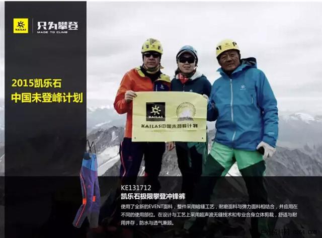 2015年KAILAS签约多名队员,中国女性登山家罗静,2015金冰搞得主AlesCesen,攀登高手李宗利和迪力夏提。
