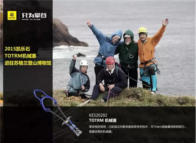 在结束2015苏格兰航海攀登旅行后,凯乐石攀登队员刘勇受邀将凯乐石Totem机械塞做为礼物赠予苏格兰登山博物馆馆长Mickthai,Mick对其精湛品质表示了肯定,并表示希望凯乐石能够提供一套,在苏格兰登山博物馆作为收藏。