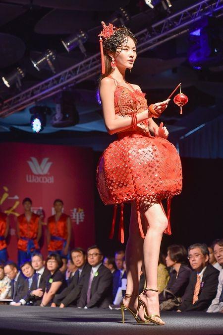 华歌尔「经典时尚秀」将肚兜与当今的剪纸工艺、3D列印、LED结合呈现,古今的融合,撞击出华歌尔的设计力(图片来源:奥美公关)