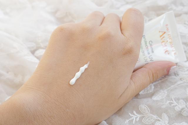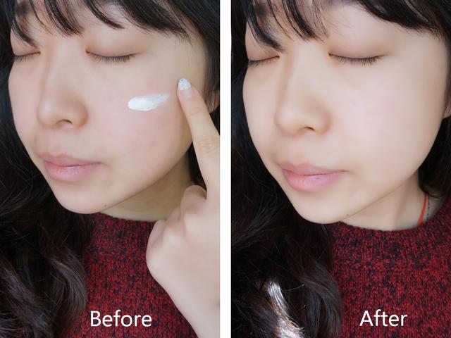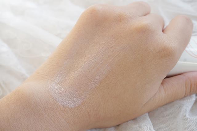 白色的质地没有一丝丝香气,轻轻用指腹就可以推开,可以感受到这款日间隔离乳的轻薄,而且质地很细腻。