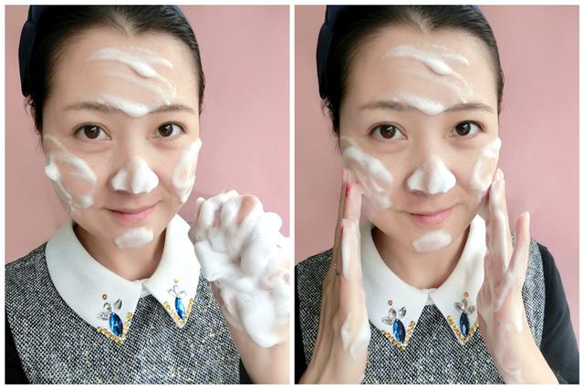 开始洗脸咯,这绵密的泡沫在脸上按摩起来舒服极了。由内向外打圈按摩哦~这些泡沫在按摩的同时能深入毛孔深层,清除肌肤毛孔内的脏污和多余的皮脂,还能轻松去除因暗沉所造成的老化角质。洁面产品里面蕴含的植物精华能够有效赶走自由基,提亮肤色,坚持使用能有效改善肌肤因缺水而出现的毛孔粗大,小细纹,色斑等。