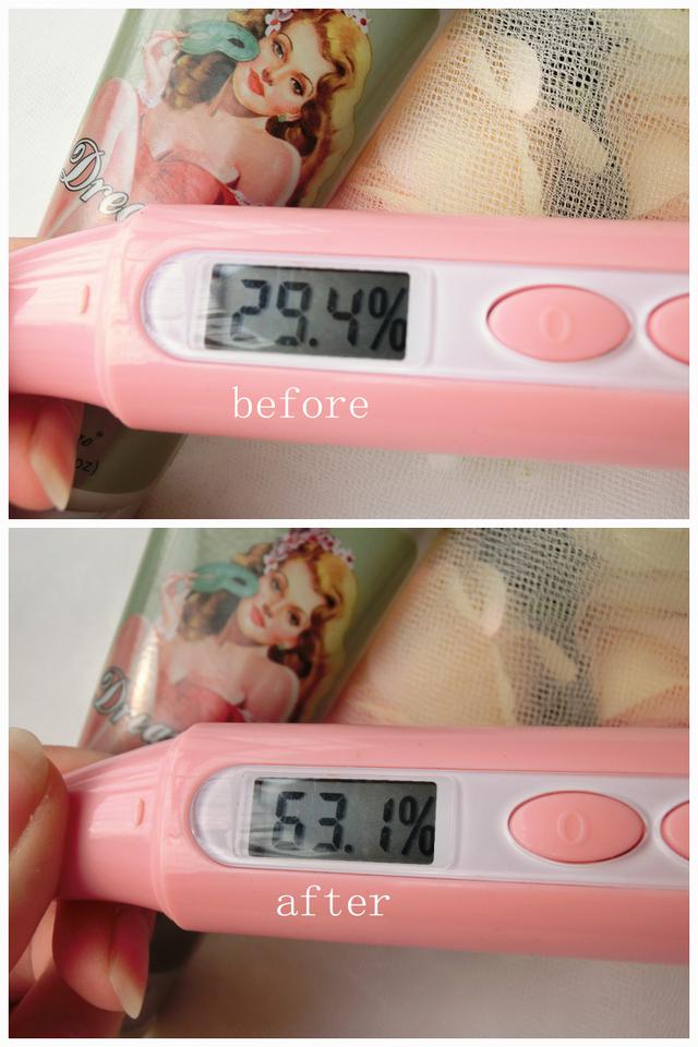 使用后面部肌肤含水量飙升到67.0% 肌肤滋润,喝饱了水的状态哦,补水效果很明显