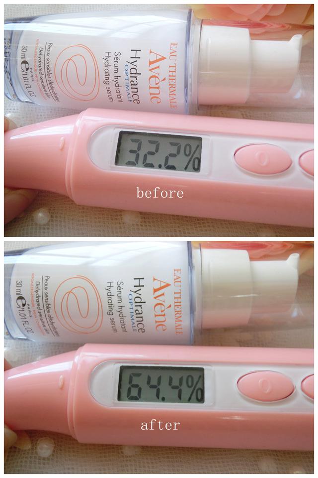 用智能肌肤水分测试仪测试:使用前面部肌肤含水量32.2% 明显处于干燥缺水状态