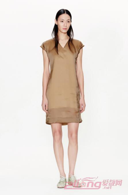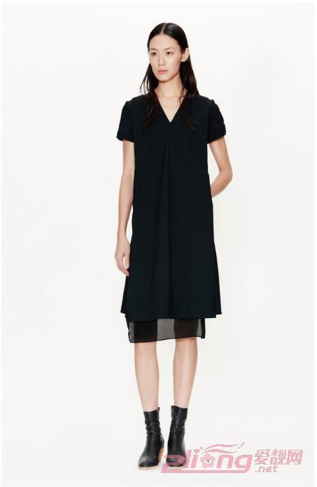 春季新款江南布衣V领蚕丝连衣裙,经典基本款的设计,肩部折边设计别出心裁,是一条严谨高级的礼服裙,不落俗套。