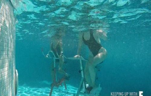 科勒-卡戴珊高叉泳衣在水下蹬单车