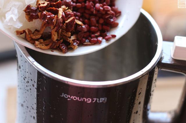 这款红豆银耳羹里,除了有银耳、红豆,还加了莲子和红枣。原来用锅炖,要炖三个小时,现在有了破壁豆浆机,把材料放入豆浆机,不到30分钟就好了。而且口感更香糯,更利于营养吸收。
