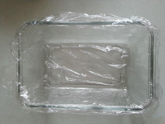 5、将保鲜膜剪成大小合适后,铺在容器里。