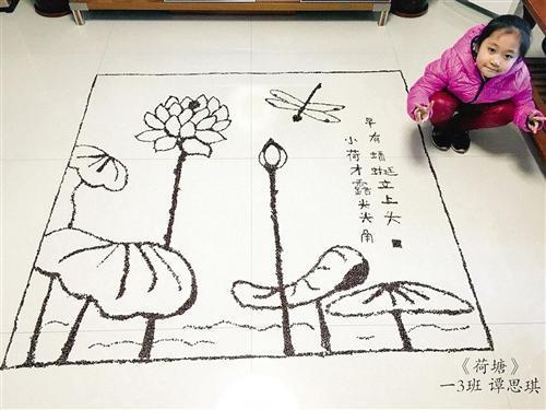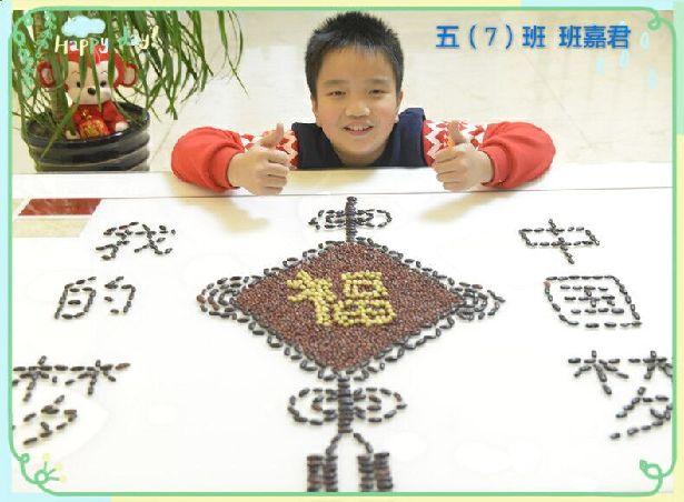 在“我的红豆故事之红豆创意秀”中,孩子们用红豆拼成字画,用特别的方式来完成寒假民俗作业。