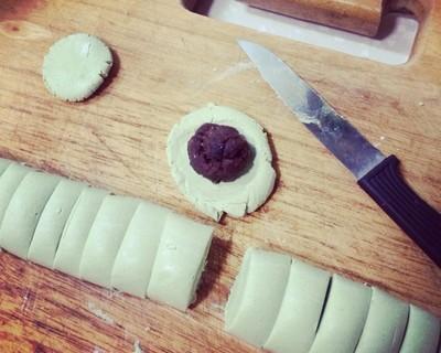 3. 搓成条,切块然后包豆沙。15g左右的面团包10g左右的馅儿,我做的比较小~