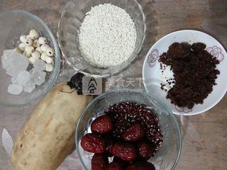 原料:莲藕、糯米、红糖、冰糖、莲子、枣、红豆。
