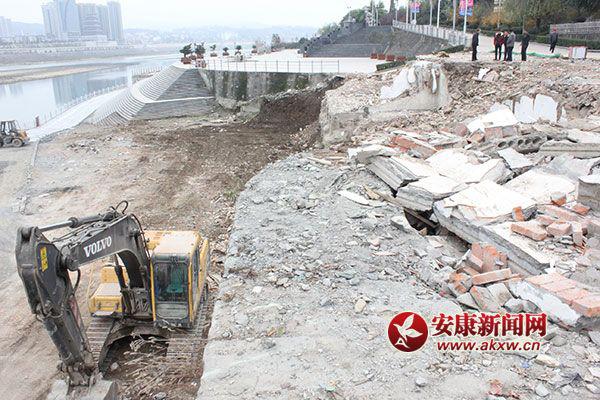 安康新闻网讯(记者董良军通讯员冯文康)11月27日,记者在水西门外 “红房子” 拆除施工现场看到,工地周边已经拉起了警戒线,大型机械对工程挖掘接近尾声,正在进行沿江道路铺设。经多方协调努力,目前已经对公园内的溜冰场、烧烤摊点、仿古建筑(红房子)等进行了有序清理和拆除,这标志着汉江公园河滩河道“两违”整治拆迁工作进入尾声。