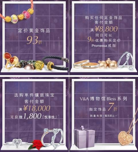 四款圣诞特辑,让你一次买到手软,携带亲朋挚爱一起来感受吧。可爱稚趣的Charme珠串,璀璨闪耀的Promessa戒指,古典优雅的V&A博物馆‘Bless’系列等,统统都有大波促销折扣,平日里看着心动,却在斟酌着价格的朋友们,趁着这次活动赶紧下手吧!