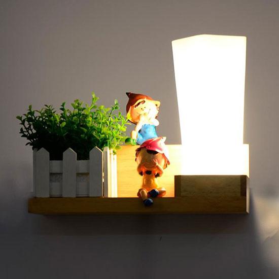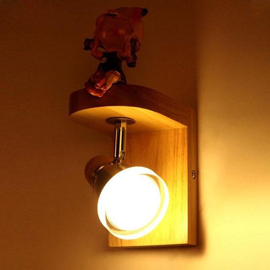 转角木板成为壁灯的底座,可以用来放置物品,更具实用性,可以旋转的灯头设计,满足了不同的照明需求。