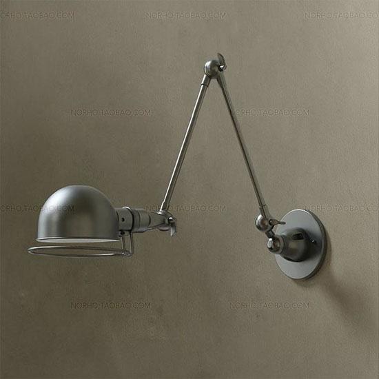 工业气息十足的壁灯,三段可调节的设计让它可以随意弯曲,以达到改变照明范围的目的。