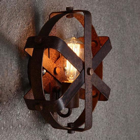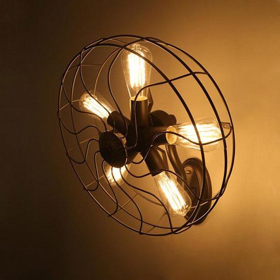 风扇造型的壁灯极具创意,由灯泡来代替风扇的叶片,搭配流动感极强的铁艺外框设计,呈现出浓浓的复古气质。