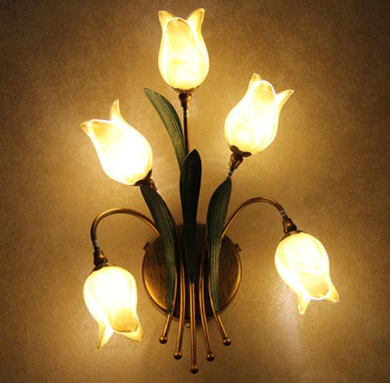 五朵郁金香让这款小壁灯成了充满花语魅力的绝佳装饰品,点亮花朵内隐藏的光源,闪闪发光的画面十分唯美。