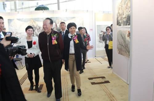 T100品牌创始人董文梅与著名画家傅又新一同欣赏书画联展作品