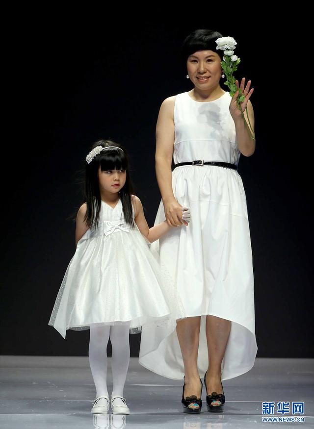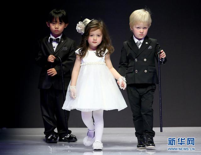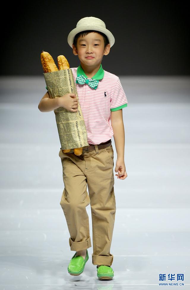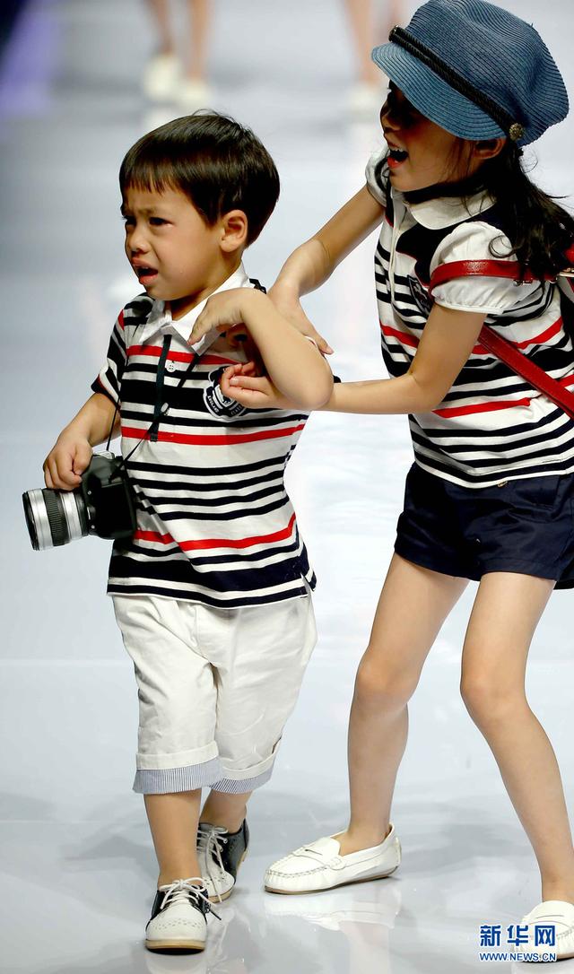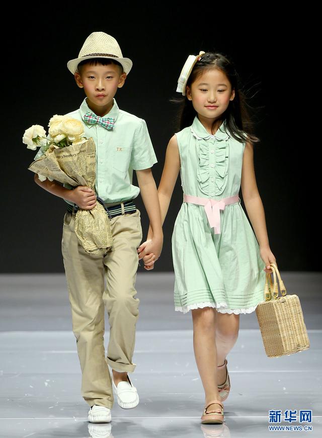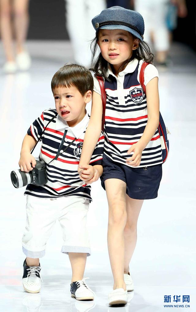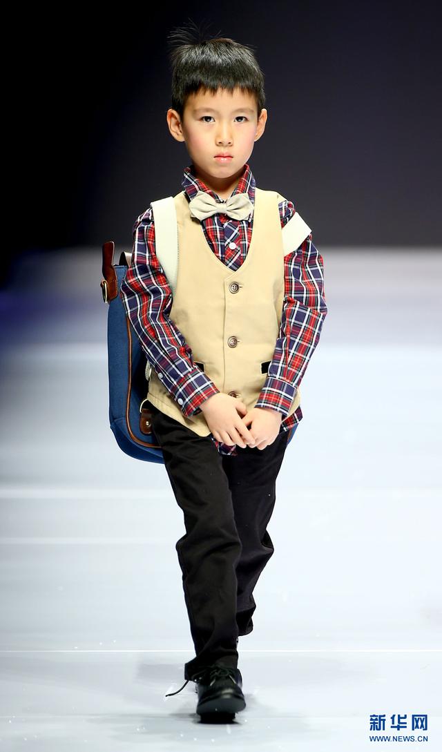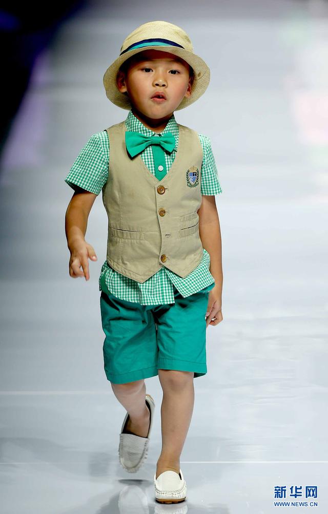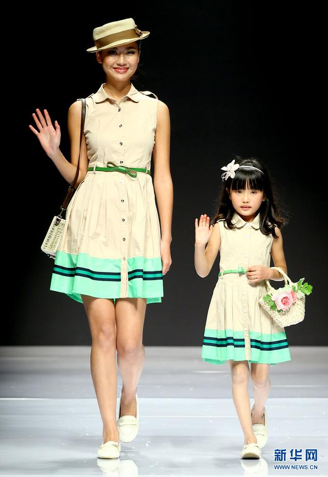 10月26日,模特在北京举行的中国国际时装周(2014春夏系列)“董文梅·T100亲子童装发布会”上展示时装。新华社记者陈建力摄