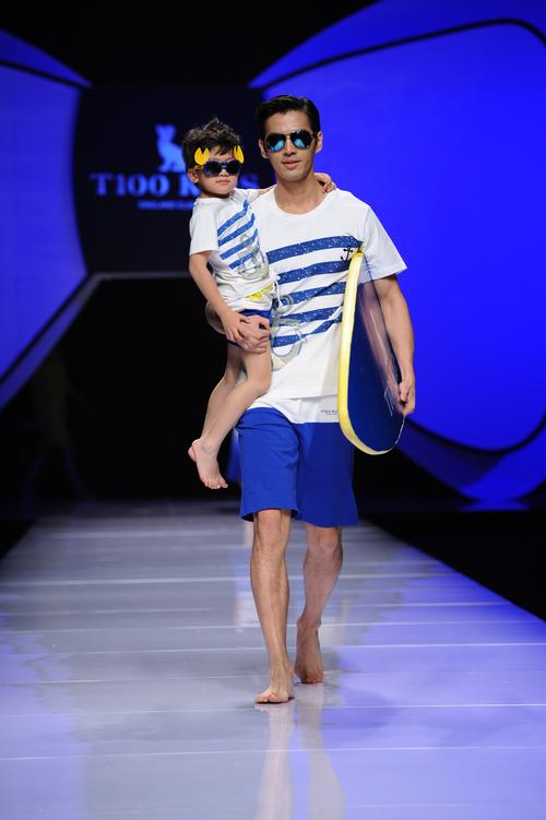 在董文梅T100亲子童装2015春夏流行趋势发布中我们看到,从用蓝白条承载探索愿望,罗盘徽章彰显独立精神,到以多彩粉格优雅学院风尚,亲子运动培养合作精神,从波点领结传达精英风范,到庄重黑纯净白神圣绅士礼装,董文梅精选棉麻面料,波点、领结、格纹等英伦风尚的优良基因,作为交融亲子情感的经典符号,在知性的色织格,黑白基调的红黄蓝绿组合中,在立体花、蝴蝶结,个性的草帽、船锚、狗仔等配饰中,真情细腻地创意着经典优雅、温馨知性、品味考究的亲子童装风尚。值得一提的是,现场“三世同堂”的亲子装表演,更是将T100坚持倡导的亲情时尚表现得淋漓尽致,感动全场。