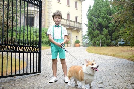 主题一:圆舞曲之夜属于“小绅士和小淑女“的圆舞曲之夜,在色彩上除沿袭黑白经典,还增加了玫红、深蓝的撞色效果,为春日平添欢快的气息。男孩的波点领结、礼帽等元素传达出精英风范,女孩的蝴蝶结、蕾丝裙边写意出优雅情调。