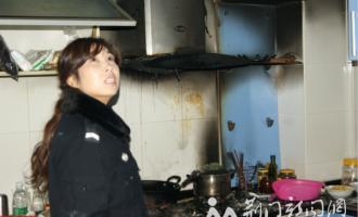 图为:义工跟随网格员为白云楼社区的困难户送粥